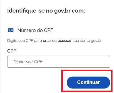 - Digite o CPF na tela inicial do https://acesso.gov.br e clique no botão Continuar.