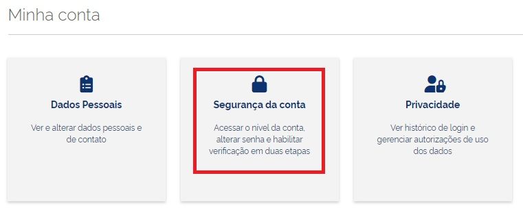 3. Cidadão deve clicar no cart Segurança da Conta.